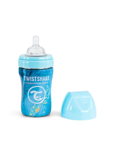 Our baby bottle fits both a newborn and a slightly older child and is ergonomically designed to be easy to grab with both small hands and larger ones. Designed with a wider neck which makes it easy to clean, the high-quality stainless steel helps keep drinks cool for a long time. The material also makes the bottle incredibly durable and strong, so as not to risk breaking if it is dropped or thrown to the floor during small, or large, temper tantrums. The baby bottle is of course, free from BPA and the lid is made of high quality PP plastic so it is safe and gentle to use, for both you and your child. Twistshake’s steel baby bottle is available in sizes 200 ml, 260 ml and 330 ml.