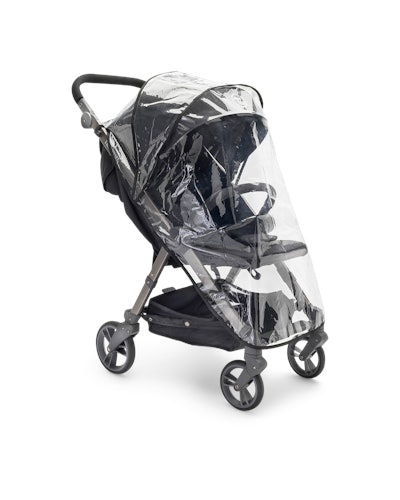 The rain cover is easily attached to the top and bottom of the stroller chassis with four Velcro straps. Hang up the cover after use for faster drying. Then fold it up and store it in the basket for the next rainy weather.
