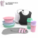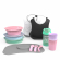 When it's time to start eating solid food, there are a lot of products needed for your child’s tableware. In this package you get a complete package of click-mat that attaches the plate, plates in different shapes, bibs and learn cutlery with a nice soft touch surface. Completely free of BPA!