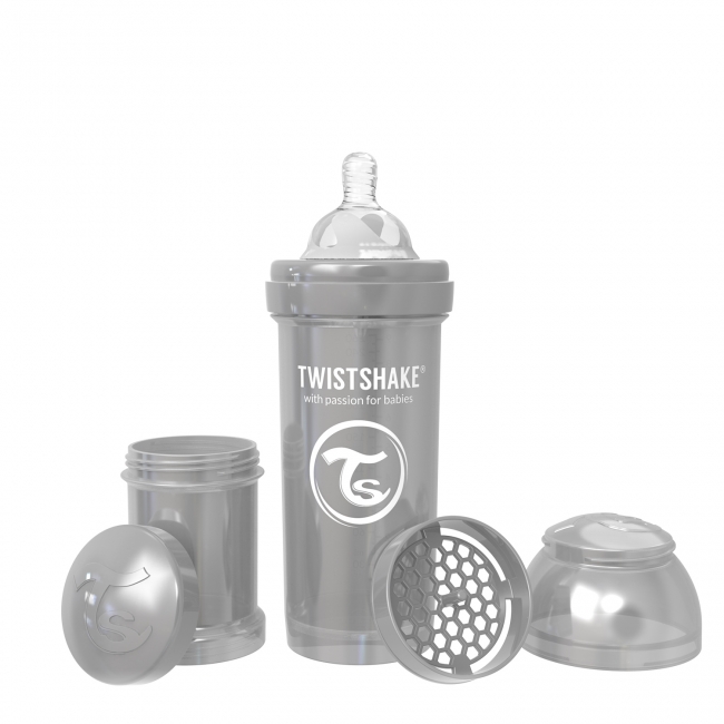 Le biberon de Twistshake est idéal pour être utilisé en combinaison avec un allaitement normal. Chaque biberon contient un contenant pratique de lait en poudre ainsi qu’un tamis. Le système unique appelé Twistflow évite activement la colique du bébé et garantit un débit régulier. Le biberon possède un large goulot, permettant de le nettoyer facilement. Il possède également un design ergonomique qui retient la chaleur.