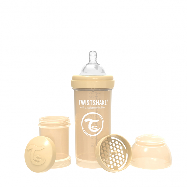Le biberon de Twistshake est idéal pour être utilisé en combinaison avec un allaitement normal. Chaque biberon contient un contenant pratique de lait en poudre ainsi qu’un tamis. Le système unique appelé Twistflow évite activement la colique du bébé et garantit un débit régulier. Le biberon possède un large goulot, permettant de le nettoyer facilement. Il possède également un design ergonomique qui retient la chaleur.