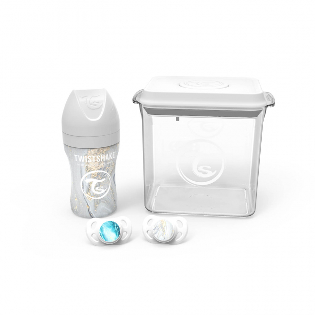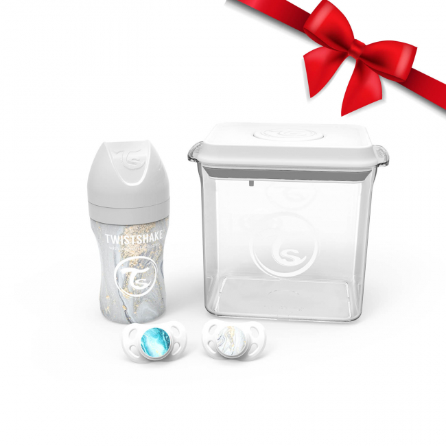 Be first with the latest! This is the Christmas gift for those who are looking for trendy products with an expressive design that stands out: Stainless Steel Baby Bottle in colorful pattern, stylish Formula Container and luxury marble Pacifiers.