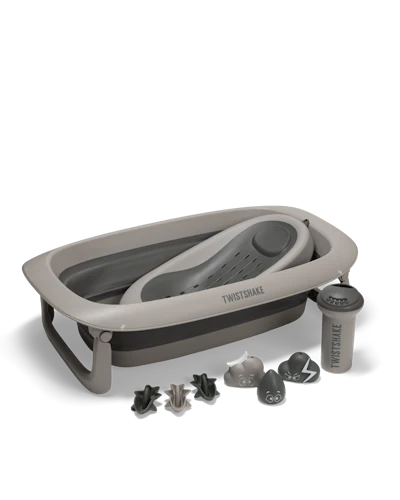 Gjør badestunden trygg, enkel og morsom med TWISTSHAKEs komplette badesett i Faded Grey. Dette koordinerte settet inkluderer et komfortabelt babybadekar, en støttende dusj- og badestøtte for ekstra stabilitet, en skånsom skylleskopp for enkel avskylling og seks lekne badeleker som stimulerer sansene.