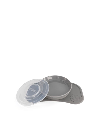 Twistshakes Click-Mat Mini is the ultimate placemat to fit your dining table or the tray on your highchair. Simply push the center of your Click-Mat to create a vacuum, keeping the placemat in place. Then, twist the plate onto your Click-Mat Mini and be sure that it's stuck.