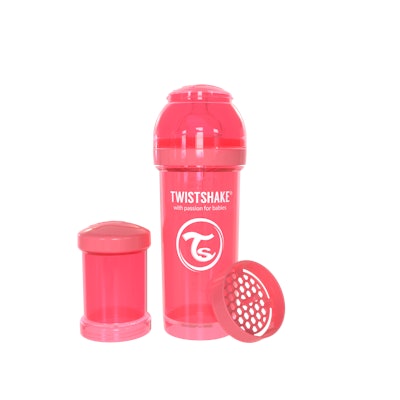 Twistshake's anti-colic baby bottle is the perfect solution for your little one's delicate tummy! Thanks to our revolutionary TwistFlow technology, you get no more air bubbles causing pain and discomfort. The air valve in the teat works in a way that releases unnecessary air instead of getting into your baby's sensitive stomach. This gives your baby an even drinking flow and reduces the risk of colic.
